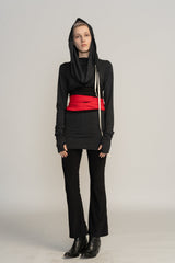 Black and Red Wrap Obi Belt