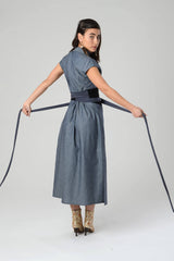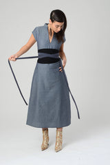 The belt is made of stretchable lycra fabric. The centerpiece is a double layered lycra in order to fit the body shape without losing its structured look.