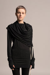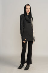This beautiful and comfortable gray hoodie top is a unique piece to have in any closet. The top has an urban look with extra long sleeves and a unique and versatile hoodie.
