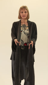 This great Japanese kimono style wrap cardigan with flare sleeves is sexy and super faltering to any body type. It is a very chic top which upgrades any outfit.